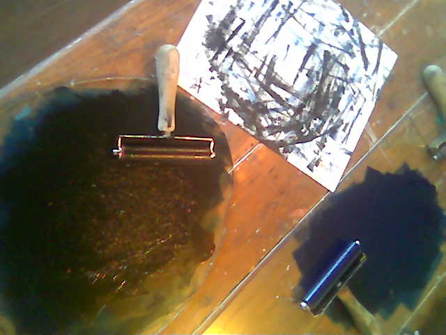 In this further processing, we make use also of graphic techniques: dry etching on plastic sheets and printing from linoleum and wood cuts.