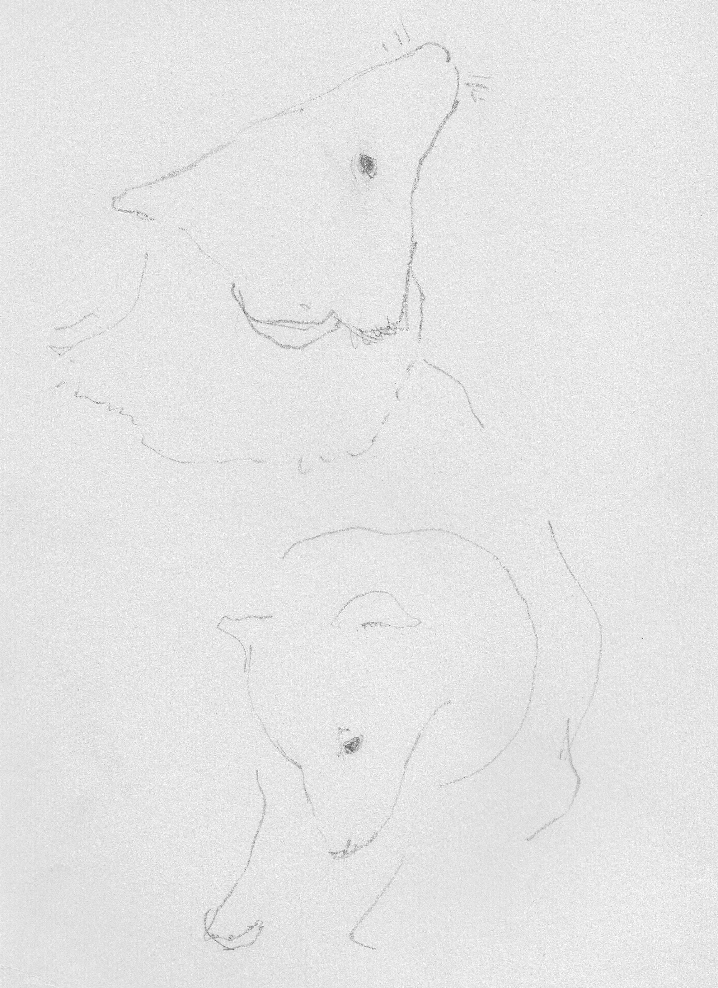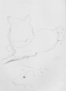 Some more drawings of Milo; graphite pencil on paper, 21 x 28 cms