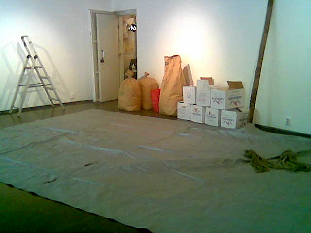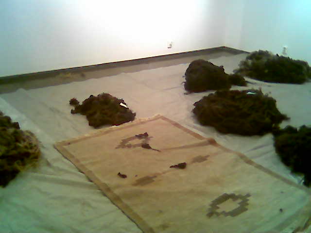 Today, the first felting was done at gallery Titanik by the bank of Aura river in Åbo/Turku. Wool from värmlandsfår and gutefår, two old Swedish sheep-breeds, was used. Two ewes of värmlandsfår, Stina and Brita, had provided us beautiful dark brown/black fells which were successfully turned into one flat, thick piece of felt measuring 1,1 x 1,5 metres. Moreover, we did some experimenting on three-dimensional felting with gray-black gutefår wool.