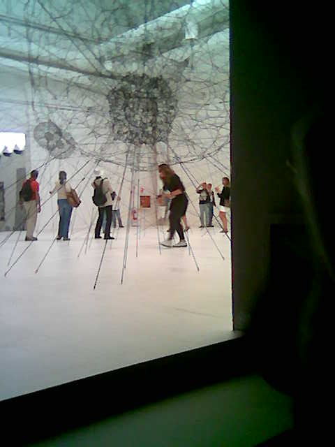 Ttéia I; gold thread in square forms, by Brazilian artist Lygia Pape