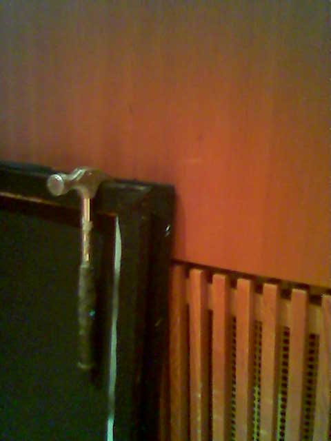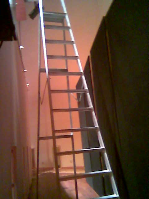 And the plummets will hang from plastic pipes nailed to the top edges. Anders, technician at Artisten, provides me with everything I need, and preparations run smoothly.