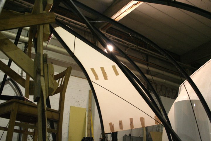 The result is far above expectations; the material diffuses light much like Japan paper, and has a slight but distinct tint of its own. I find it beautiful – it will turn our cots into large lanterns.