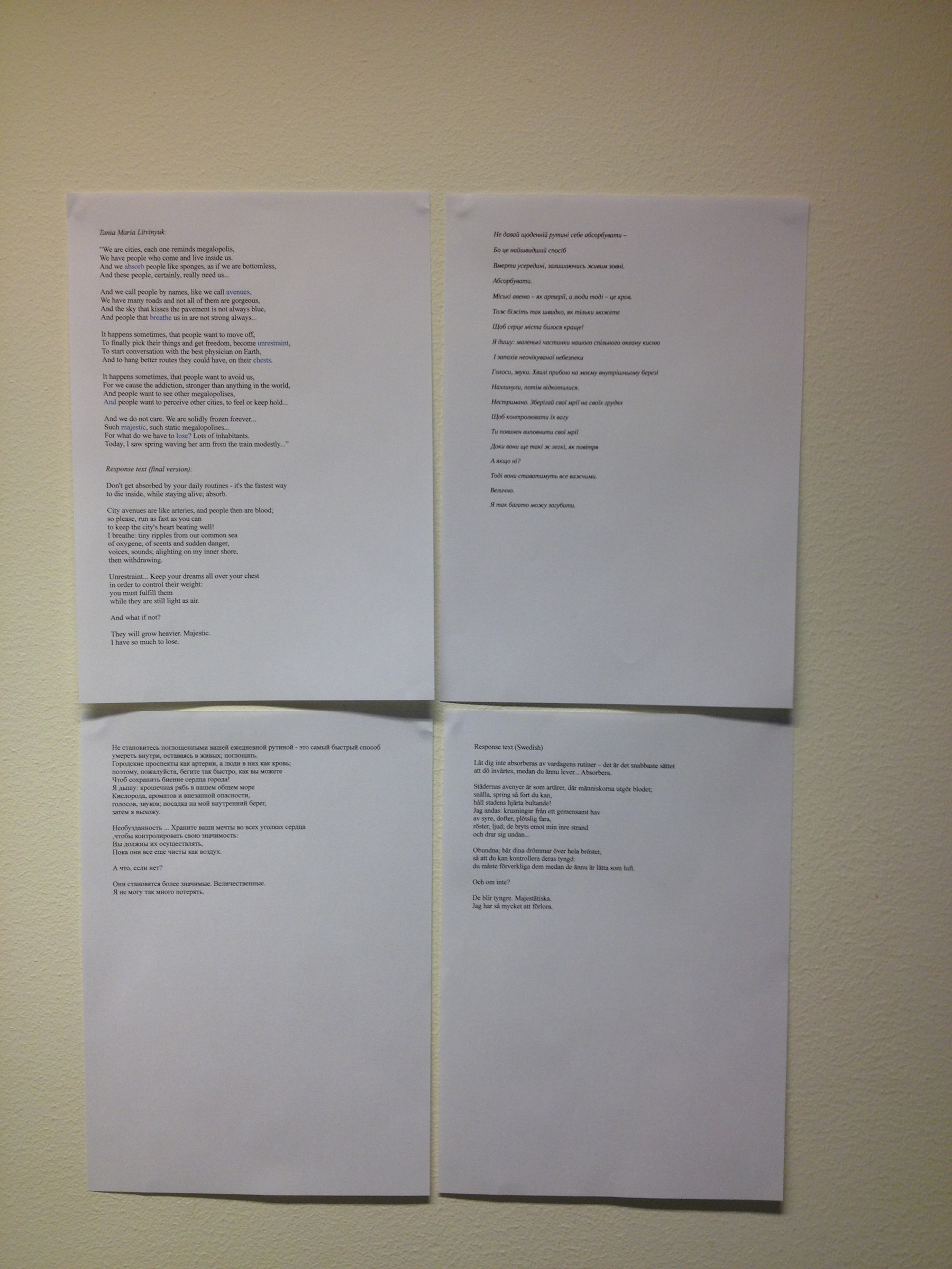 Time to reveal how the project came off, really. First, a recap – this is the ‘common ground’ we started out from, the untitled poem by Tania Maria Litvinyuk: