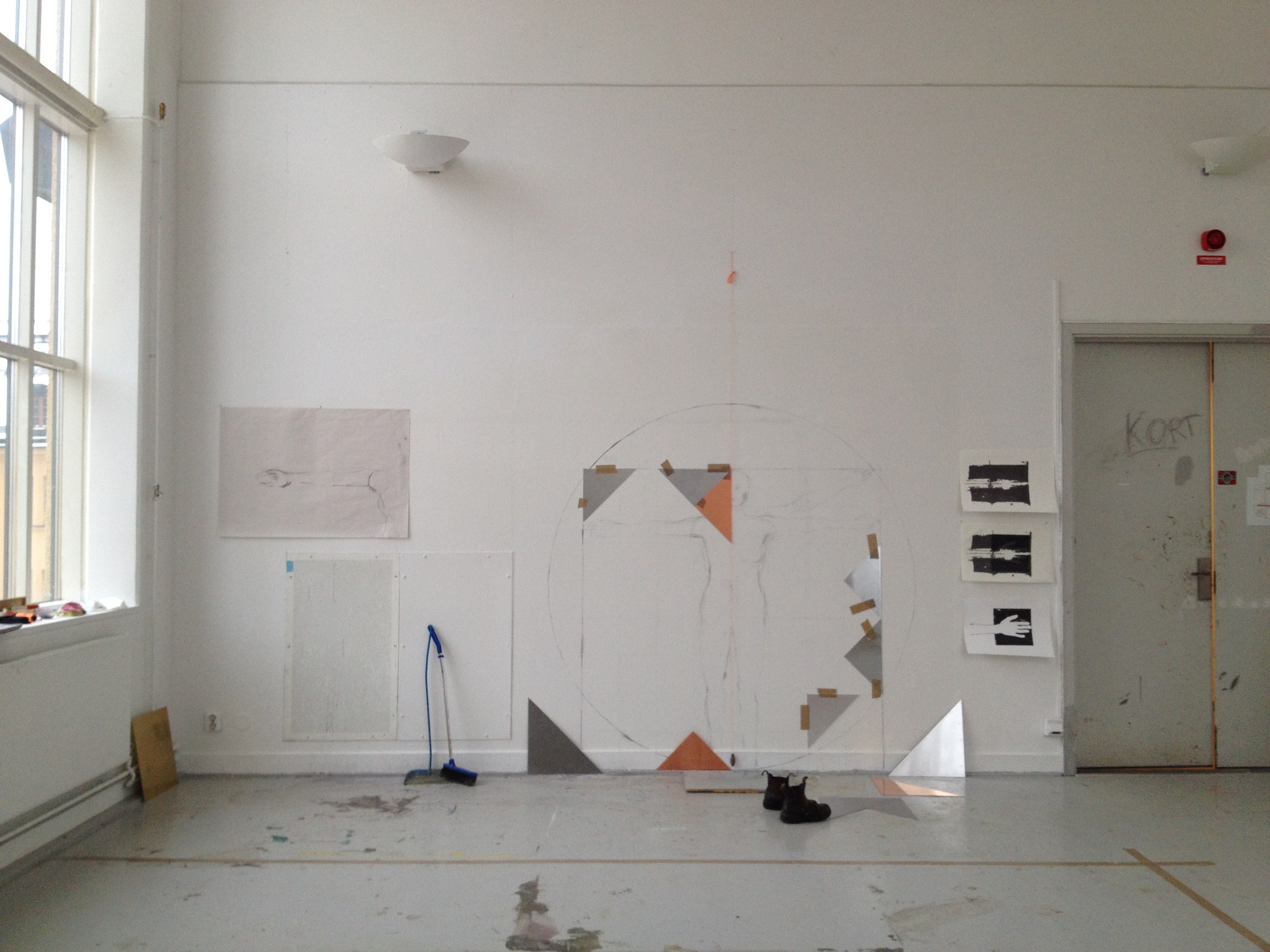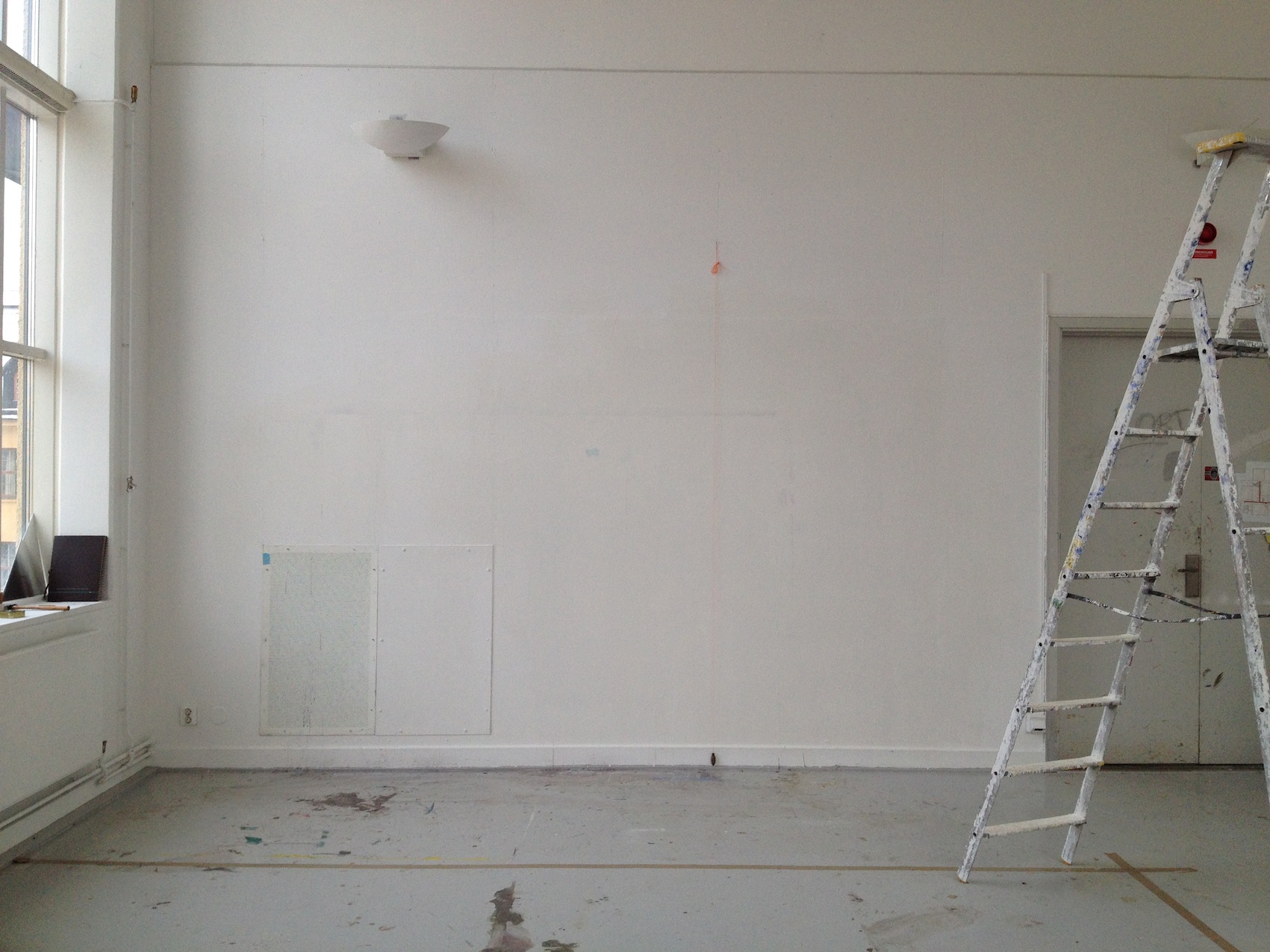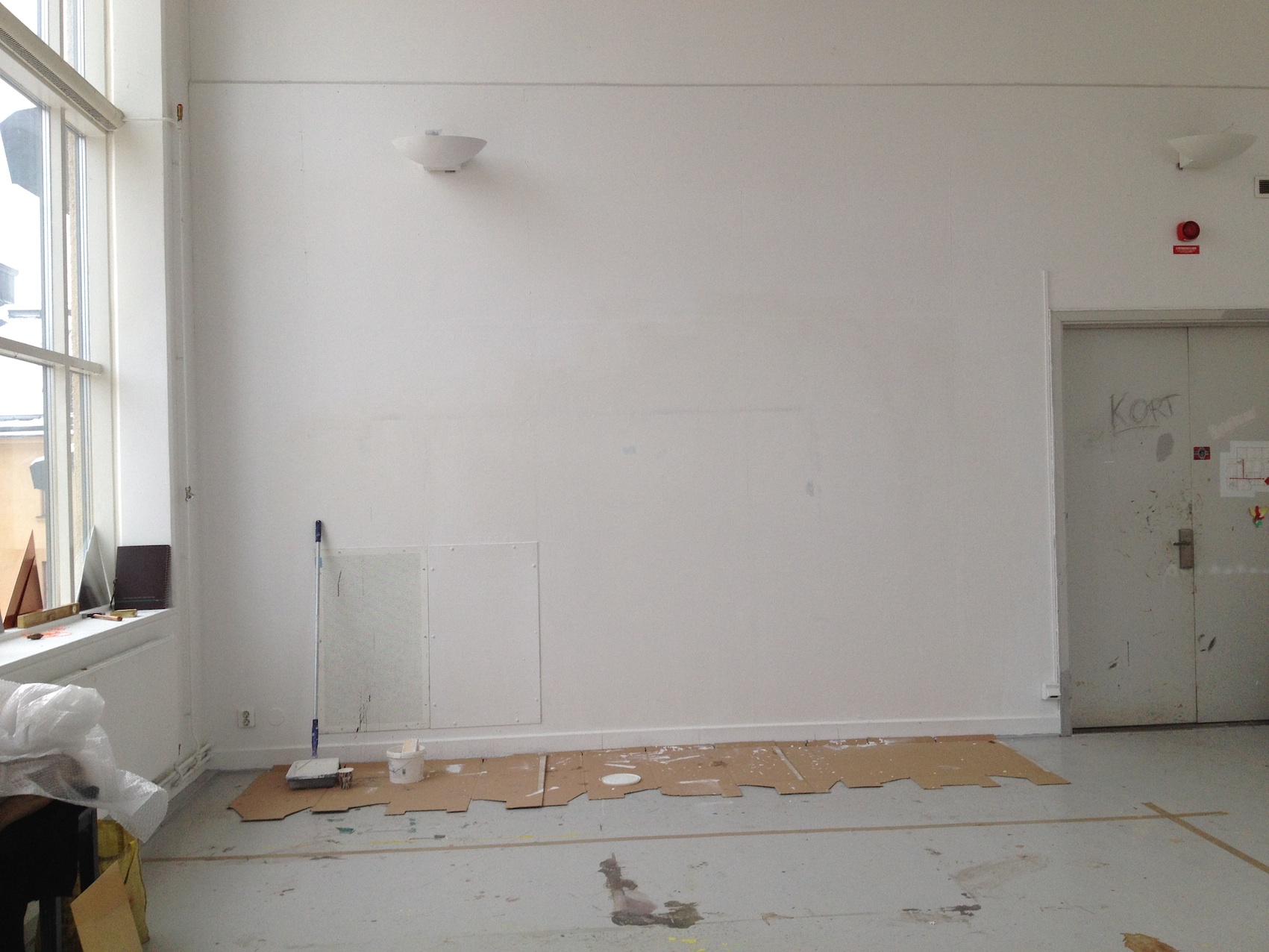 I really like it at the graphic department. People are kind, and work hard. Workshop teachers are skilled, clever and generous. There’s one thing I miss, though: a wall. Fortunately, the Royal Institute of Art also provides us with a painting studio – huge walls, large windows – which can be booked for a shorter or longer period. I’m lucky enough to get access almost instantly, and spend a weekend transferring small-scale sketches into full-size ones.