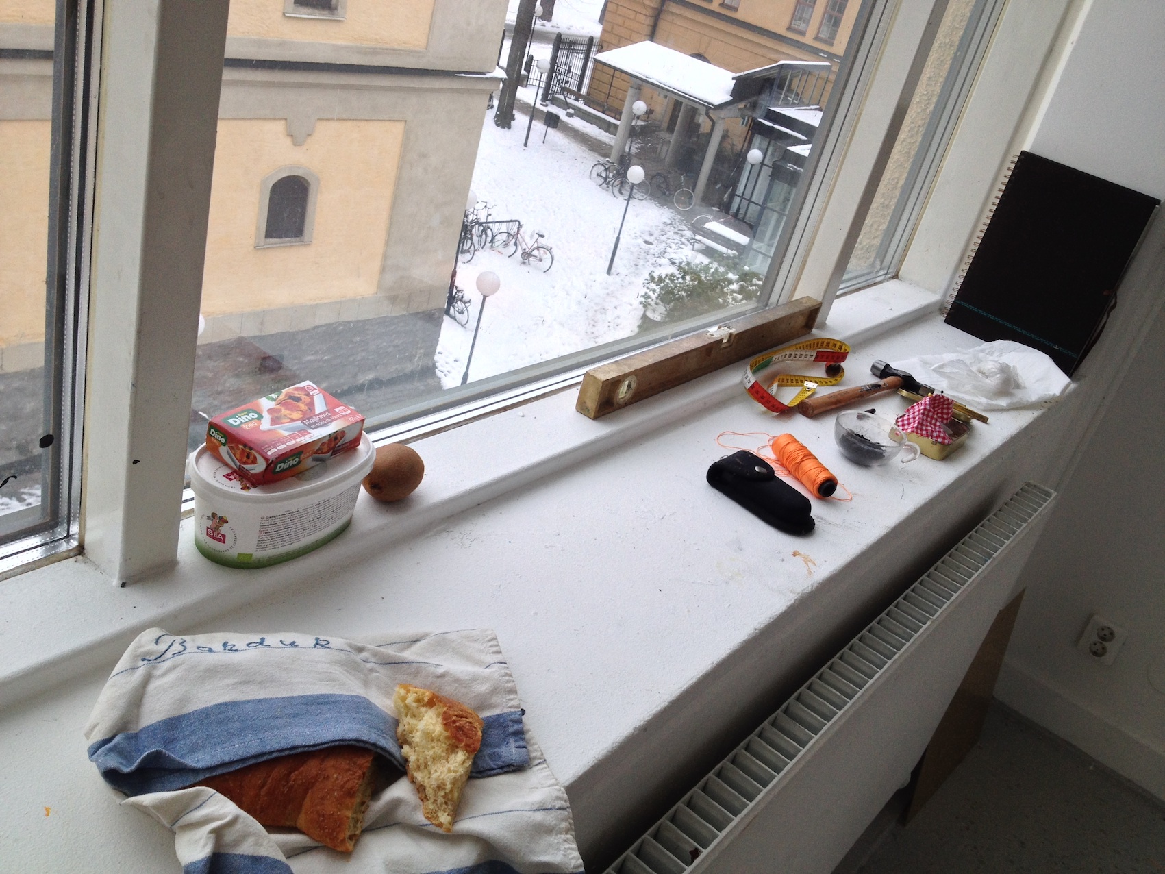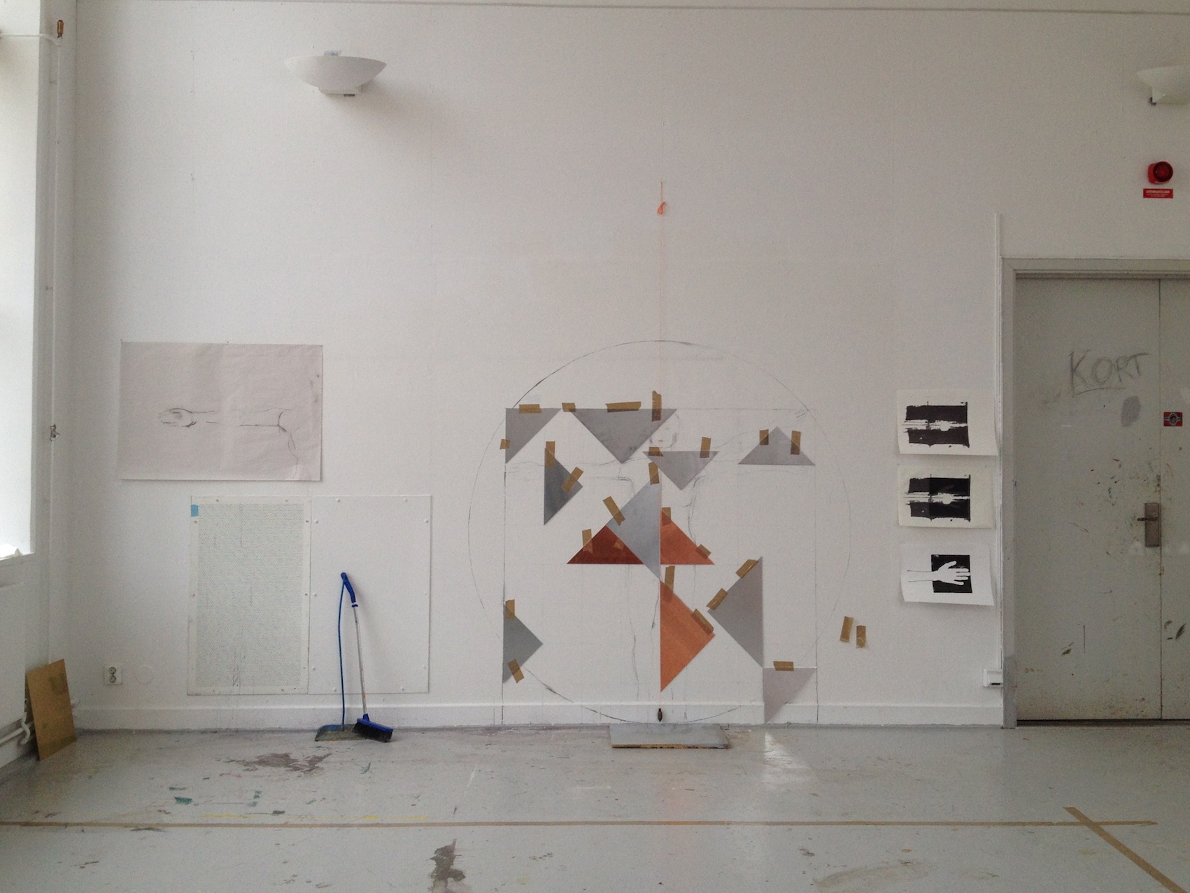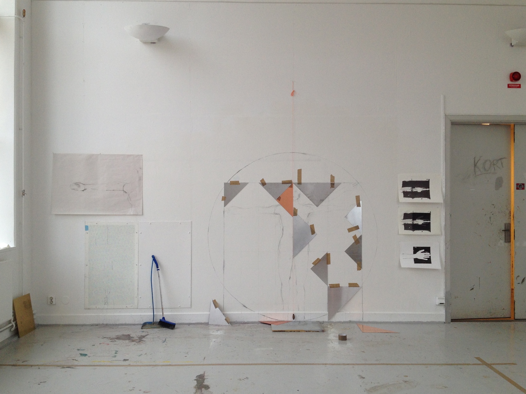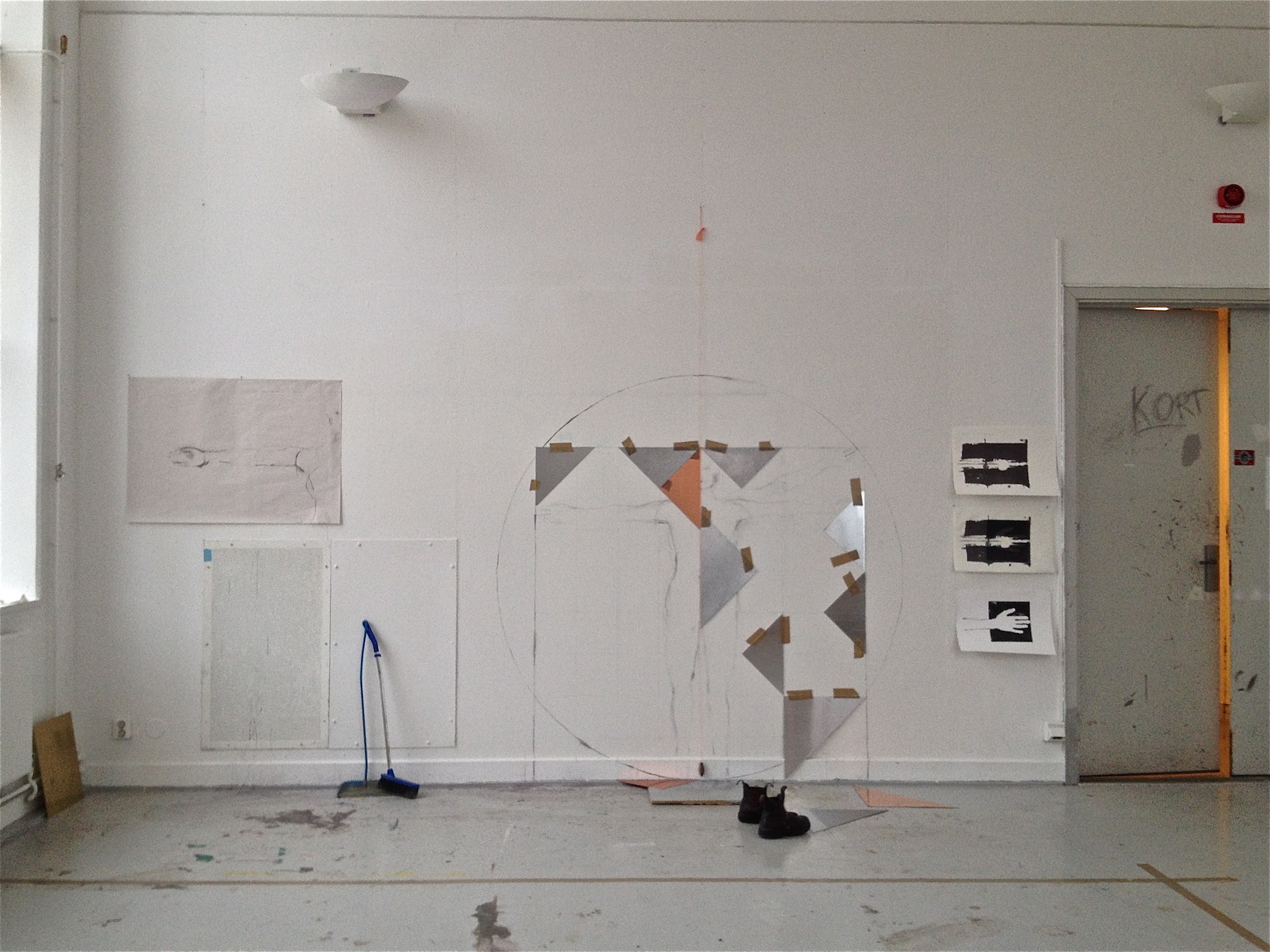 I really like it at the graphic department. People are kind, and work hard. Workshop teachers are skilled, clever and generous. There’s one thing I miss, though: a wall. Fortunately, the Royal Institute of Art also provides us with a painting studio – huge walls, large windows – which can be booked for a shorter or longer period. I’m lucky enough to get access almost instantly, and spend a weekend transferring small-scale sketches into full-size ones.