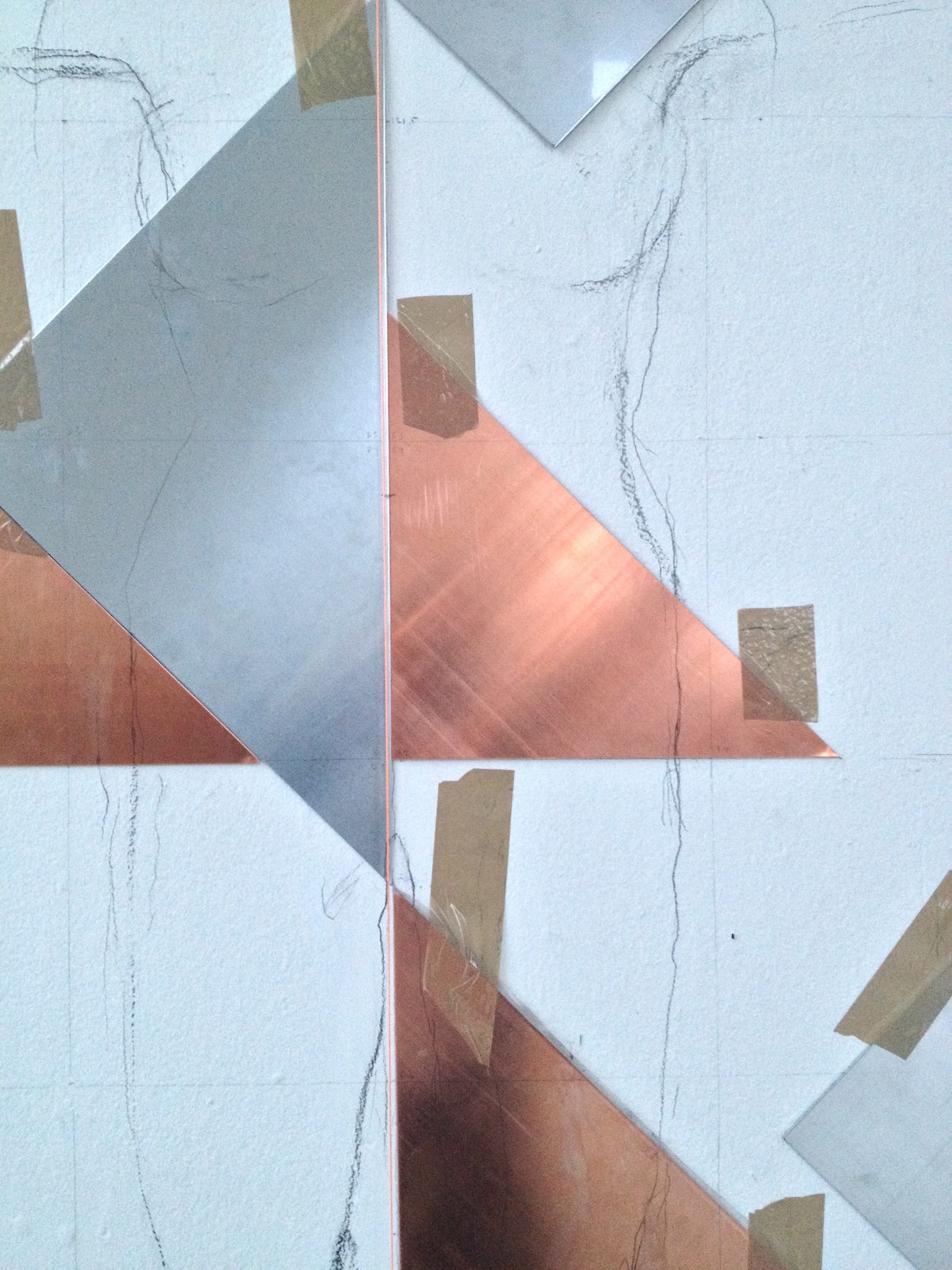 Third day: add the plates. Arrange them according to previous sketches. Move them around until it’s truthful. Then stop.