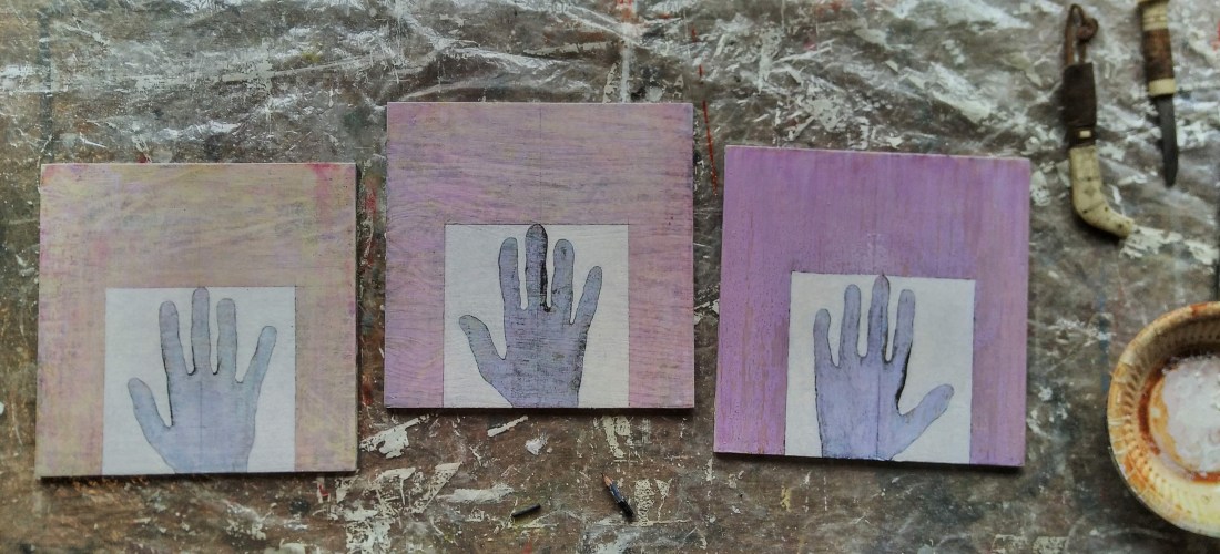 Synecdoche, oil on wood panel, 25 x 25 cms (2020); contributed to the ARTiE Mail Art project; photo HHW.