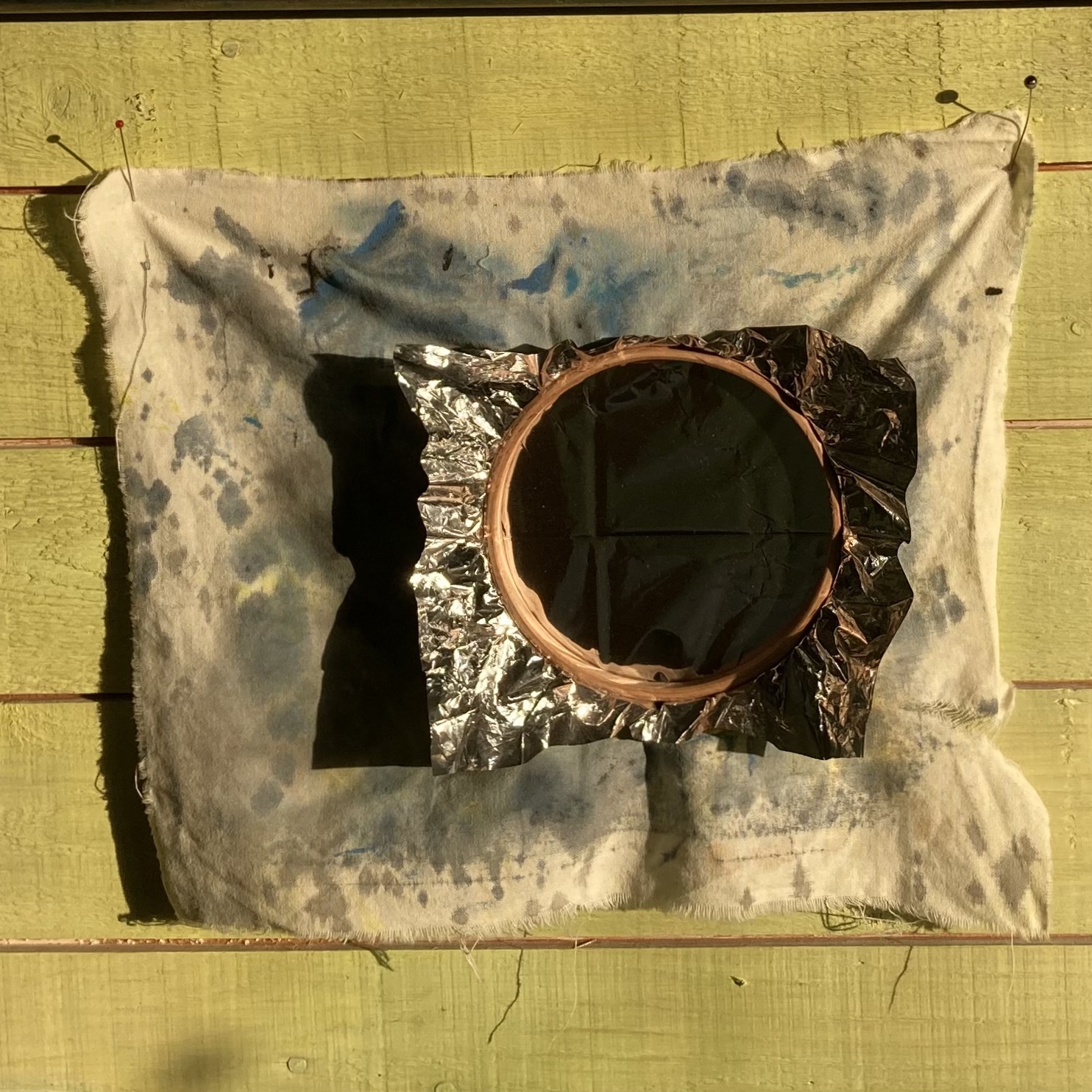 May came and went. Inbetween the construction steps of the chest, I tried to figure out how to best turn an emergency blanket into a mirror – for the making of another, embroidered map…