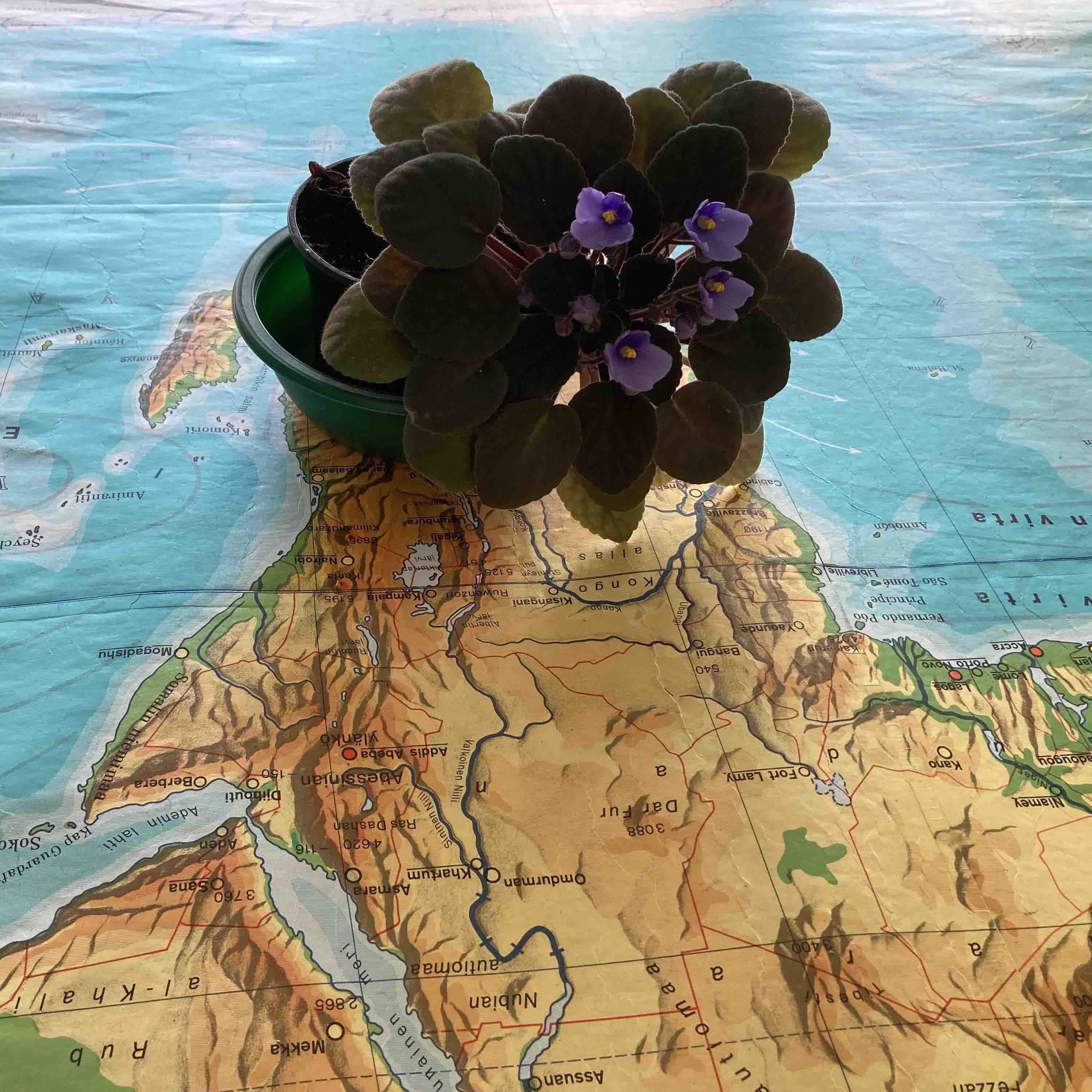 Below: an Usambara violet (Streptocarpus ionanthus), a species classified as “near-threatened” in its native habitat – the Tanzanian Usambara (Dughulushi) mountain range, where cloud forests are today increasingly being cut down in order to give way to extended agriculture. Collected in the 19th century by British and German colonizers, further examined and propagated in Europe, the Usambara violets now survive largely as pot plants on narrow window sills around the world.