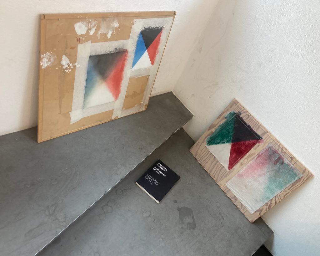 Missing here are Tobias Sjöberg’s Octave – watercolour paintings covering two huge windows, creating a quiet virtual space opening to pure colour; turning the room into a floating vessel, carrying living people and pale plaster muses along outside of time …
