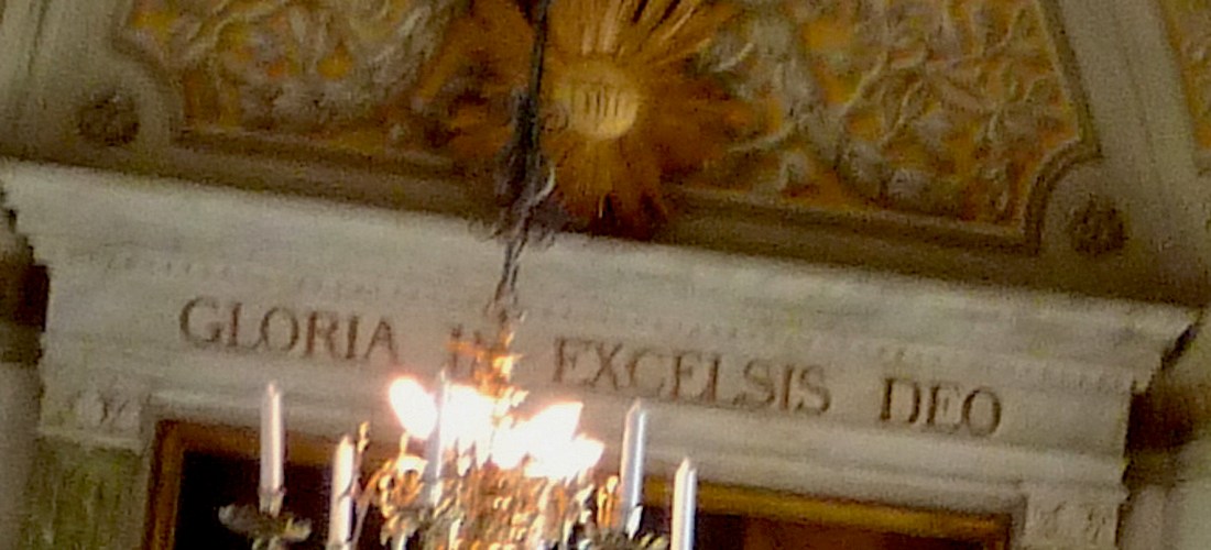 Shifting focus forwards and upwards from the floor reveals one of the church’s most distinct features: the altarpiece, painted in 1812 by Swedish artist Pehr Hörberg, depicting Christ washing the feet of Peter. The painting is surmounted by the words Gloria in Excelsis Deo – the beginning of a Gregorian hymn, dating back to the very first centuries of Christianity, and known as the Greater Doxology. The musical notation used in those days consisted of plain square signs, which conforms well to the technique of mosaic tiling… and the next words of the hymn go Et in Terra Pax Hominibus Bonae Voluntatis. I felt this line belonged in the piece; a response from below.