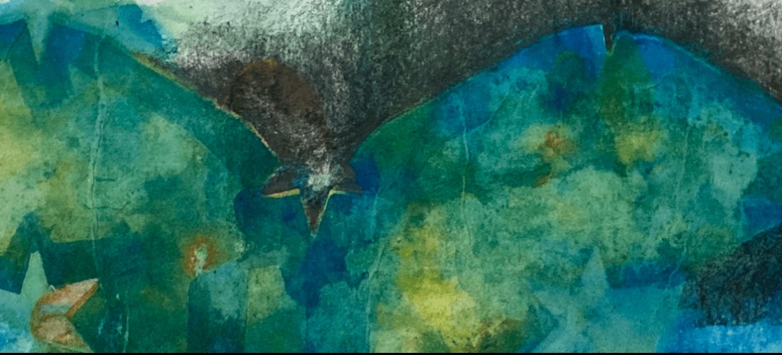 below: ‘Butterfly Map’ variations; graphite pencil drawing (left), monoprint (right); watercolours x 8