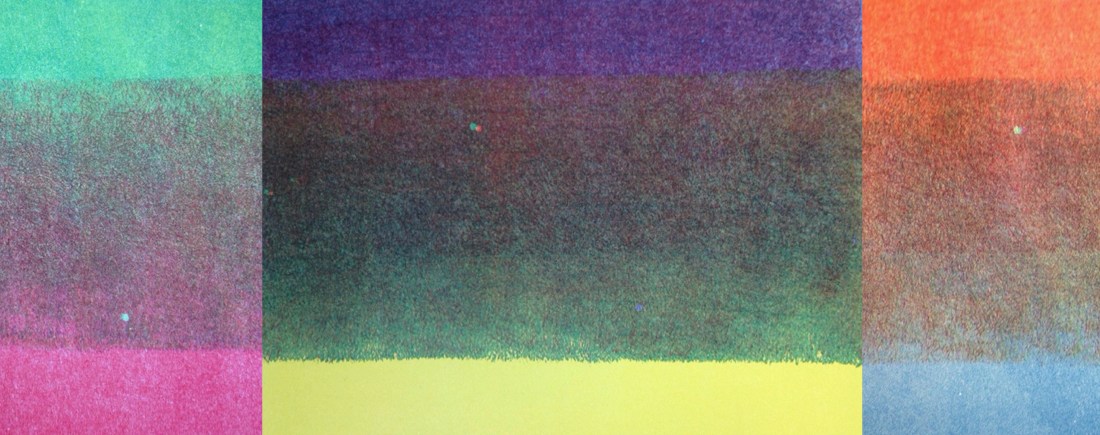 In understanding “painting” as a material rendering of light, lithography and silkscreen techniques offer interesting alternatives to brushes and palette knife. Here a few samples of systematical/random variations in painting by printmaking – yielding some surprising chromatic results.