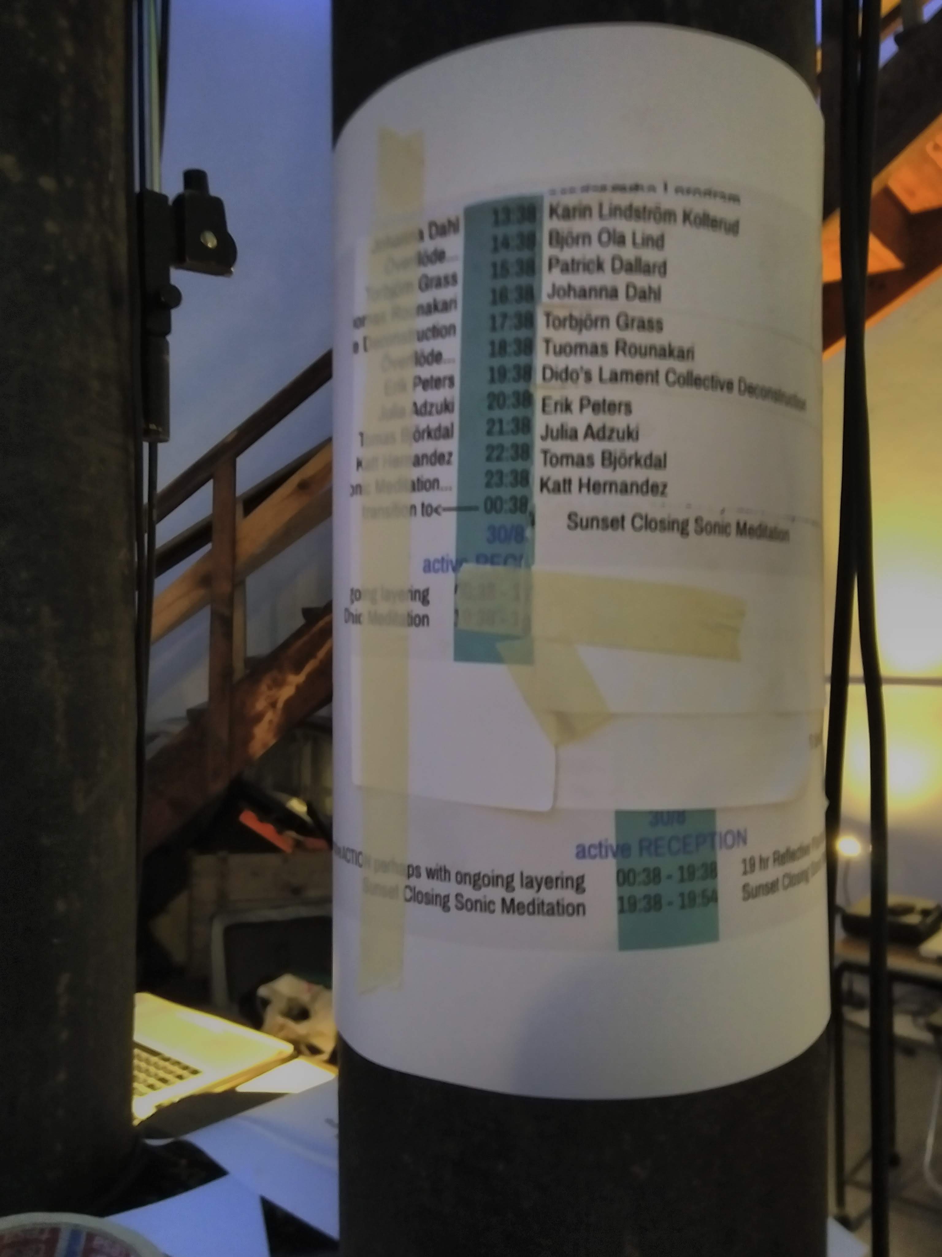 We – the Ljudtornet/Soundtower team – sincerely apologize to our listeners that the announced live streaming of the SoundWavesLament had to be cancelled. Nevertheless, the mishap eventually came across as an unexpected blessing; enhancing artistic focus within a ritual space.