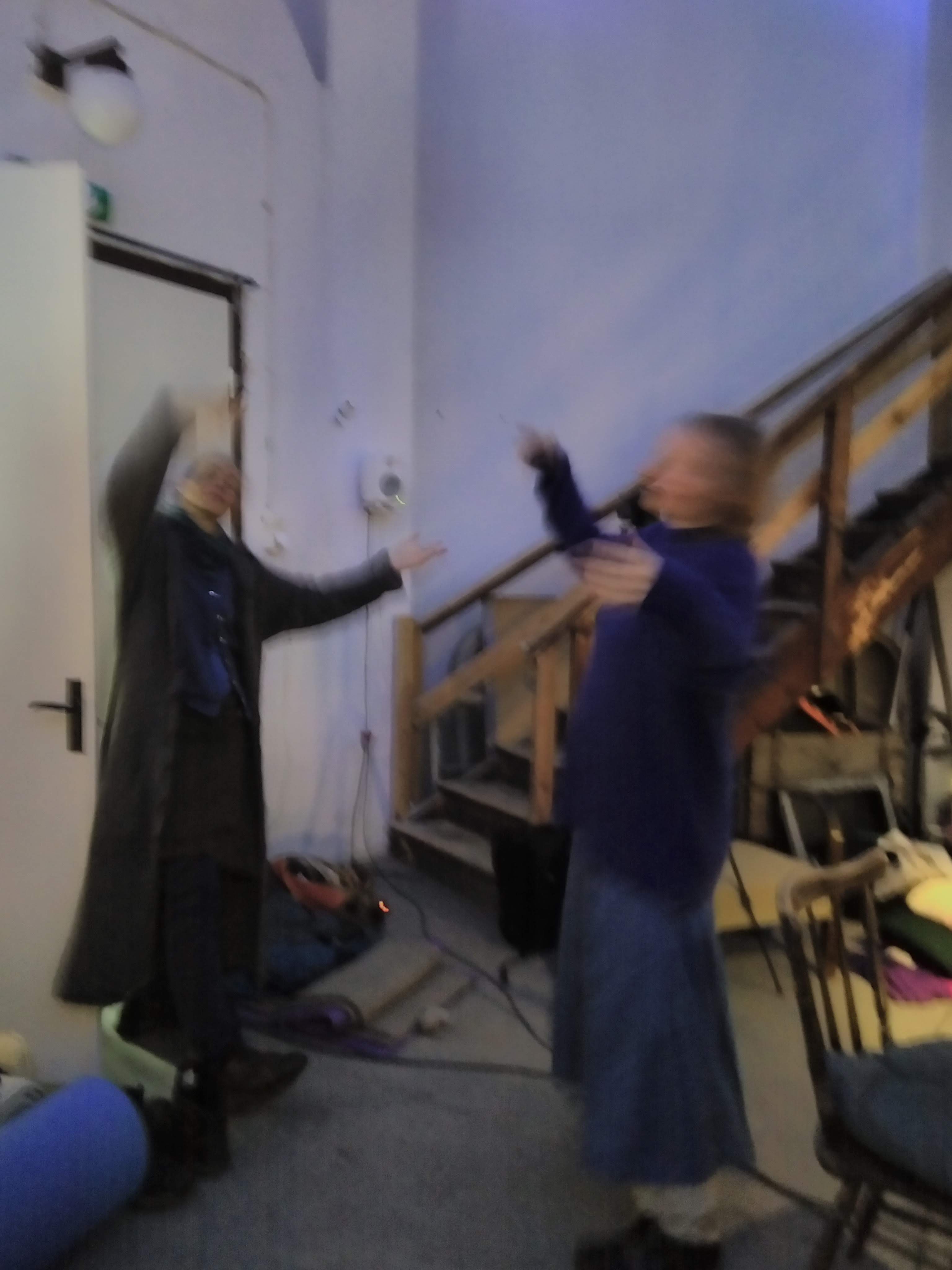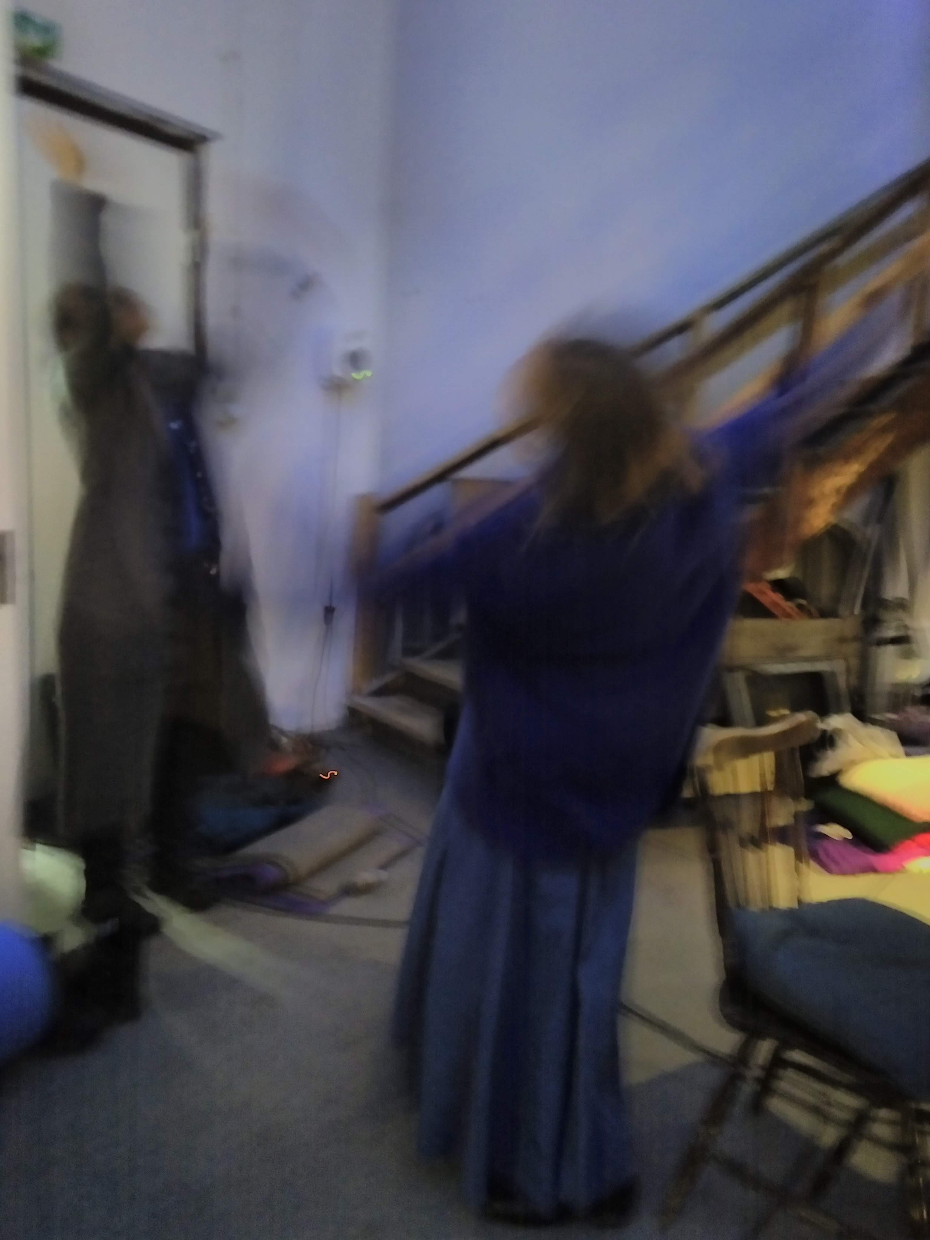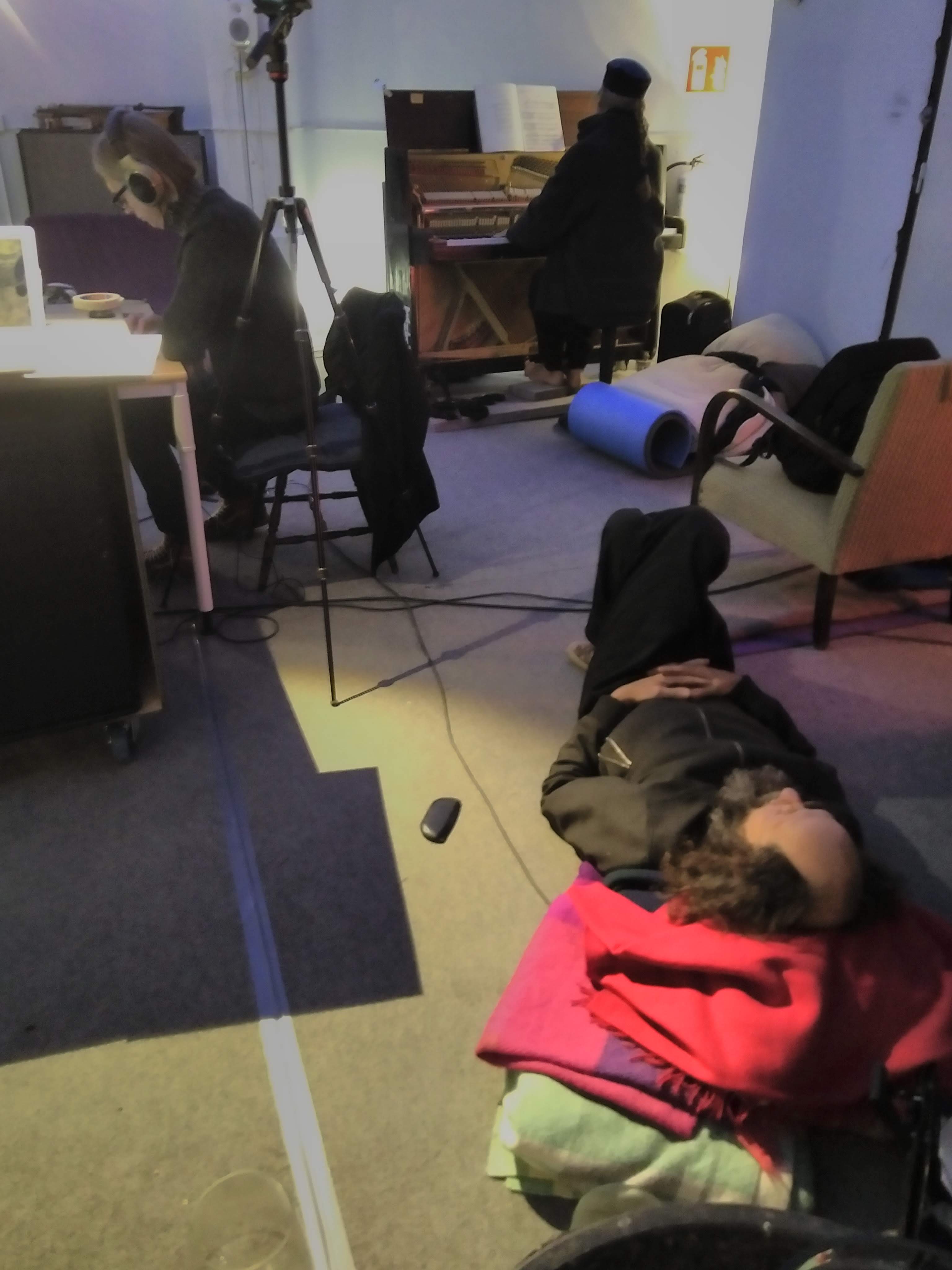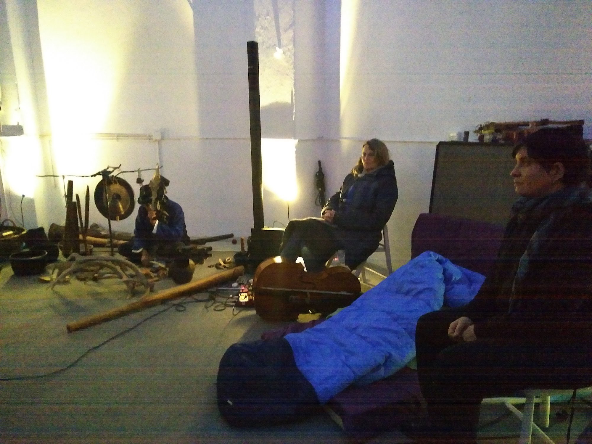 Julia’s low, steady heart beats, transmitted via contact microphone, and little sounds of dripping water; mingling with humming voices, floating rhythms strummed and tapped; at times, blending with birdsong from outside; passing on to field recordings from World Listening Day; a gentle Sunrise River Reverberation. Julia’s text On Lament is read and echoed, before the first hour closes with a sonic meditation by Pauline Oliveros – Teach Yourself to Fly.