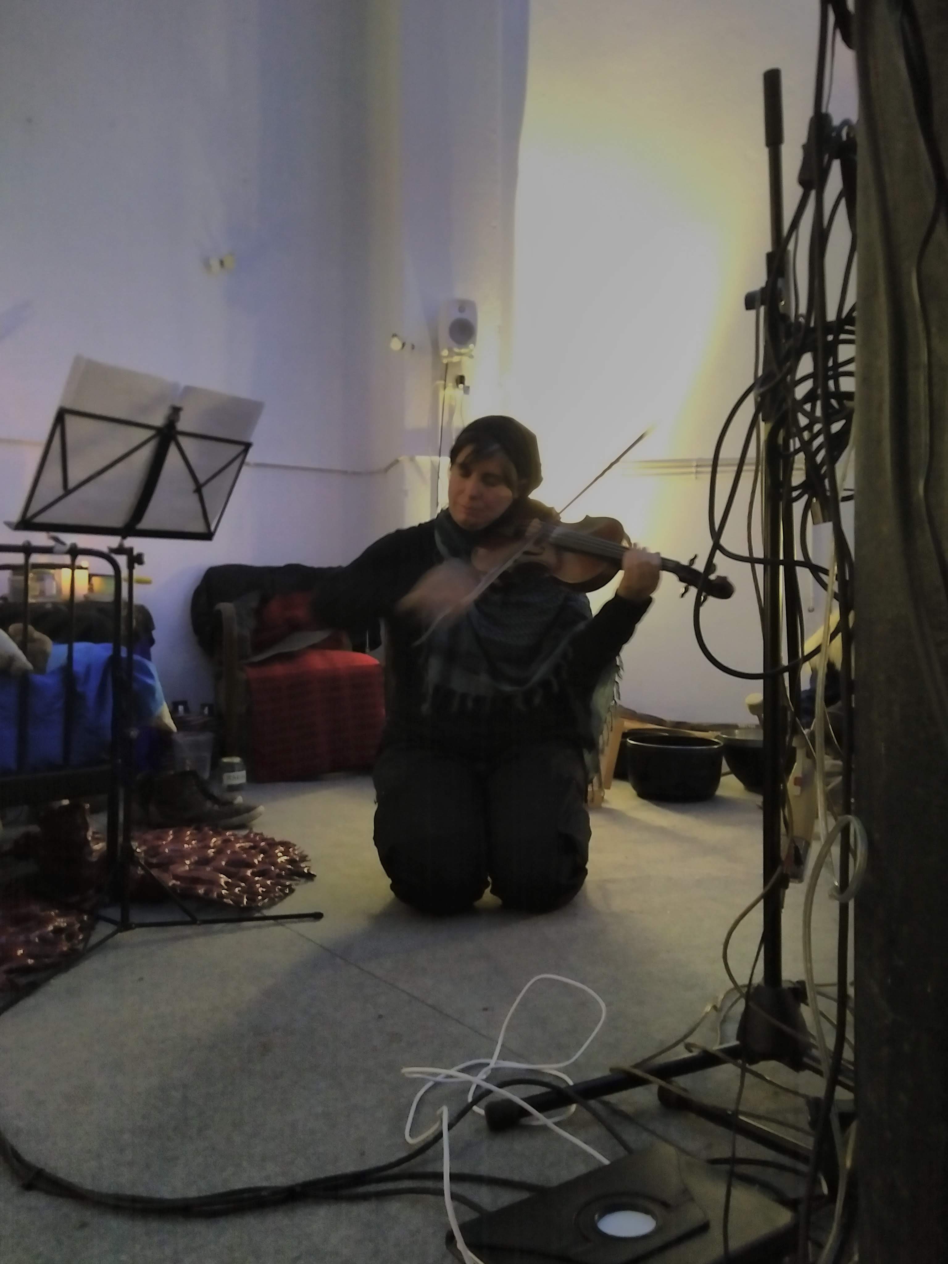 From herding calls to soft singing bells, from poetic readings and instrumental improvisations to Dido’s lament deconstructed, and further; to a sing-along of melodious gratitude, a purging ceremony by violin and an electronic/sonic Northern light experience; a ritual lament pulsates within us, between us; releasing emotions and opening up for what will become… past sunset, all the way into the night.