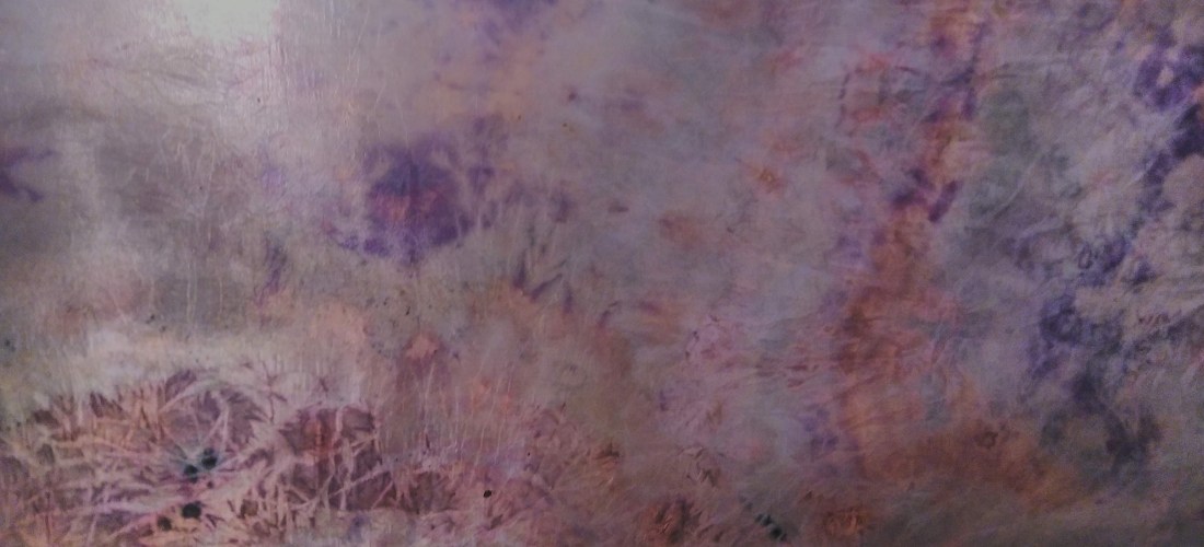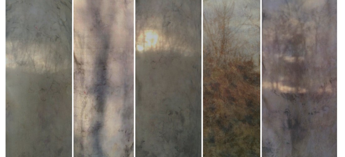 I’m collecting beech leaves, ferns, nettles and compost soil, still moist and balmy. Preparing fabric with alum mordant, before wrapping it all together. Another journey beginning.