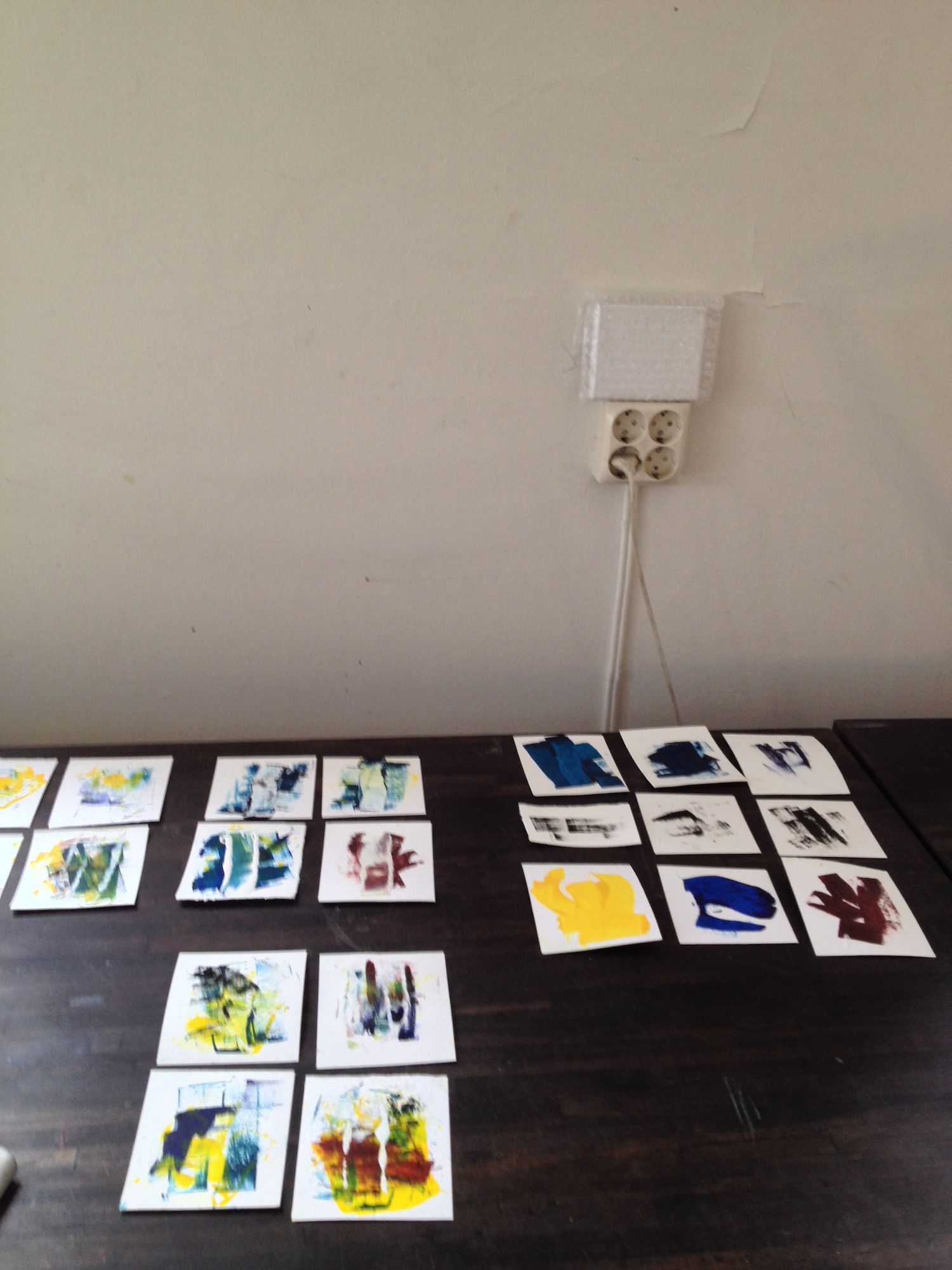Third day: add the plates. Arrange them according to previous sketches. Move them around until it’s truthful. Then stop.