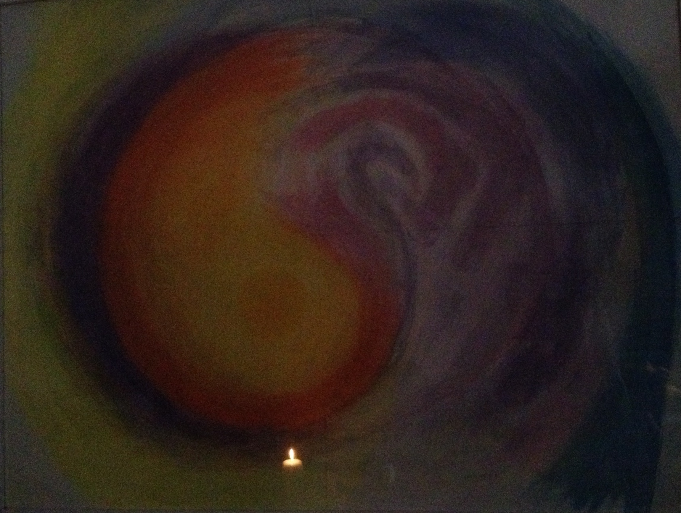 This is a post made in honour of artist Karl Schultz-Köln, who passed away on Dec 28th, 2013, in the age of 92; the photo shows a candle, lit beside his deathbed and mirrored in one of his artworks.